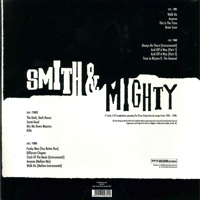 It's never too late to put the record straight and add another name to the pantheon of Bristol music greats, something they more than deserve. It is with genuine excitement that Bristol Archive Records announce the release of Smith & Mighty, “The Three Stripe Collection 1985-1990”.